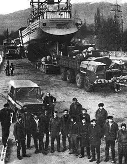 В Омске, на речном вокзале, «Гидрометеоролог» ждал перегрузки на баржу. Из Челябинска прибыла специальная электротележка о 96 колесах. На тележку поставили кильблоки, изготовленные в Омске, на эту «подушку» уложили корабль, а затем сию диковинную комбинацию с помощью стотонных кранов опустили на баржу. Так и плыли по Иртышу до Семипалатинска. В Семипалатинске уже лежал снег. Тележку с кораблем запрягли тремя мощными «Ураганами», и двинулся необычный кортеж через города и веси — по лесам, степям и горам. Города проходили ночами, ждали, когда уйдут с линий троллейбусы, когда поднимут и отключат провода. Последние километры шли через горы. Свирепо рыча, «Ураганы» брали перевал, с которого открылся долгожданный Иссык-Куль... Я выхожу из каюты и по трапу поднимаюсь на палубу. Над Иссык-Кулем мерцают низкие звезды. Чистый лунный серп высвечивает снежные горные цепи у горизонта. Огромное озеро словно в беспокойном полусне ворочается под одеялом ночи.