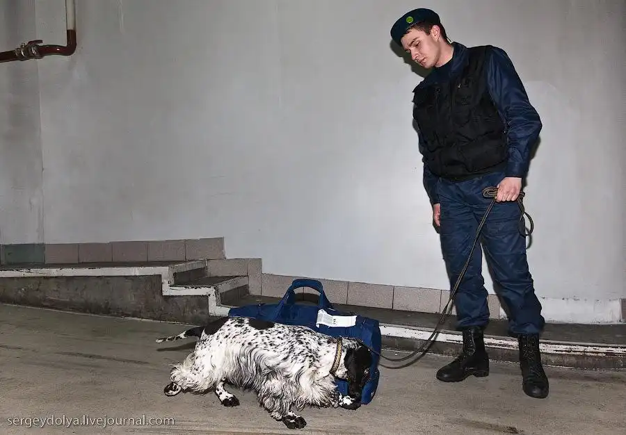 Затем чемодан попадает в интроскоп, где его просвечивают на предмет взрывчатых веществ, оружия и других запрещенных предметов:
