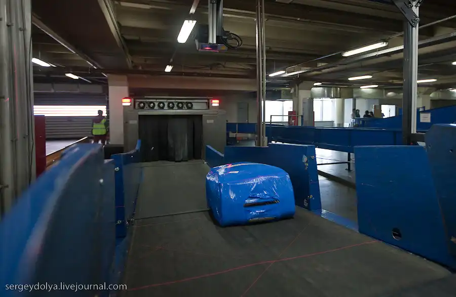 Первым делом чемодан проходит через сканер. В каком бы положении не лежал чемодан, сканер считает информацию с его бирки. Если вы оставили на чемодане наклейку со штрих-кодом от предыдущего полета, то сканер может запутаться, и ваш багаж поедет на дополнительную обработку, где сотрудник аэропорта вручную найдет на чемодане нужную бирку и отправит его на ваш рейс. Поэтому сотрудники аэропорта посоветовали мне срывать все лишние наклейки с чемодана после каждого полета.