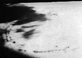 Светящаяся территория представляла собой широкую прямую полосу с отчетливо выраженными краями; причем полоса не стояла на месте, а передвигалась.