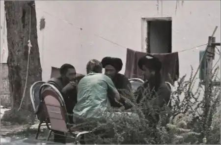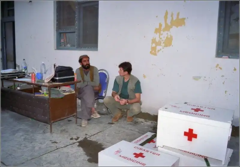 Доктор Вячеслав Титов и Владимир Шарпатов, сверху за ними наблюдает талиб.