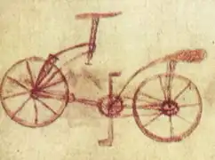 Знаменитый велосипед Леонардо. Бросаются в глаза две вещи: