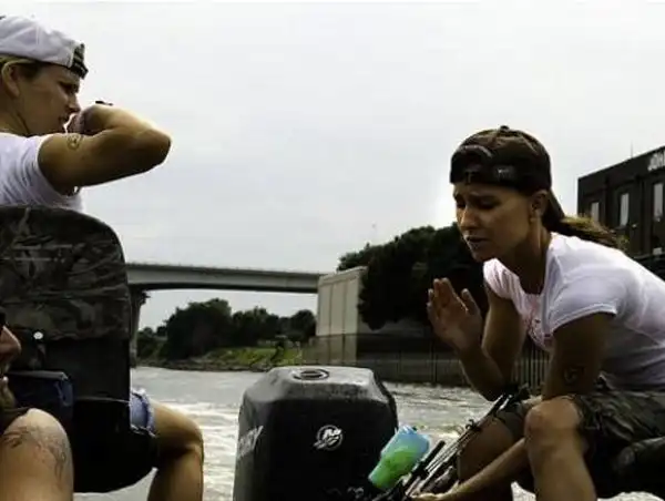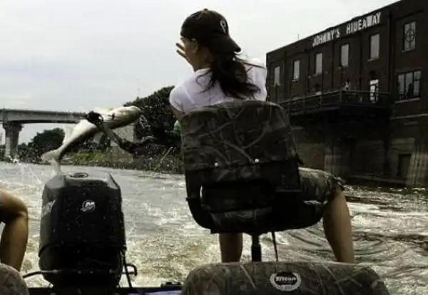 Это кадры экзотической рыбной ловли выскакивающих из воды карпов в Америке на реке Иллинойс.