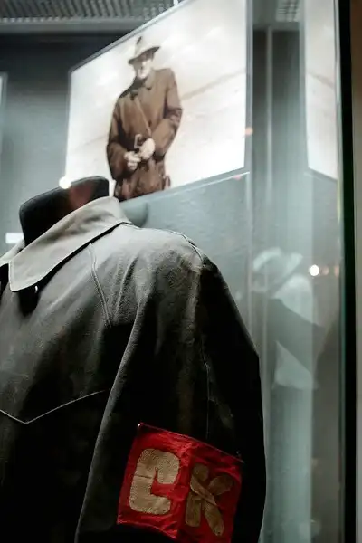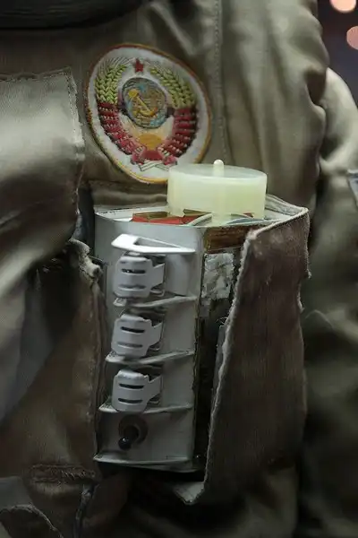 Еще один плащ Королёва. Меня поразила эта ужасная повязка на рукаве, означавшая принадлежность к стартовой команде при запуске первых баллистических и геофизических ракет.