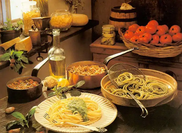 Так что, как видите, рушится расхожая версия о том, что Марко Поло привез длинные макароны из своего путешествия в 1292 году из Китая, по мнению итальянцев, ничего глупее, чем предположение о китайском происхождении национального итальянского продукта, выдумать нельзя. Слово «макароны», например, имеет корни в разговорном древнегреческом. По данным многочисленных раскопок, задолго до Рождества Христова греки и этруски уже производили и употребляли в пищу свои собственные макароны, первые изображения инструментов для приготовления чего-то похожего на равиоли были найдены на рельефах в этрусской гробнице VI века до нашей эры.