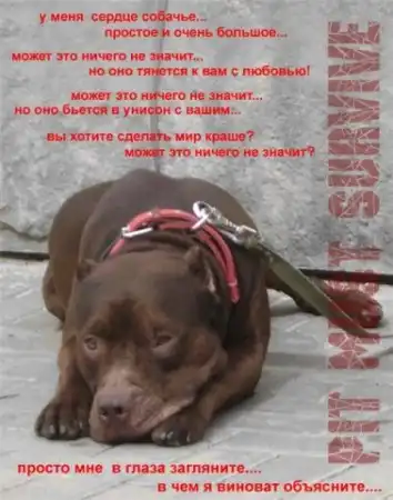 агрессию к собакам. Ни один нормальный заводчик пит-бультерьеров не будет разводить собак для боёв, а т. к. питомник бойцовых собак и не зарегистрируют, то официально питы давно перестали быть «бойцами». Их так и называют, «условно-бойцовая» порода. Конечно, никто не отвечает за качество собак с Птичьего рынка и за щенков от частных вязок (" у тебя пит?» — «угу!» — «давай повяжем»? — «а давай!»), но и за психическое здоровье владельцев тоже, увы, никто не отвечает, поэтому не надо судить о всей породе по нескольким несчастным собакам, которым не повезло с людьми. Значит, проблема не в породе?