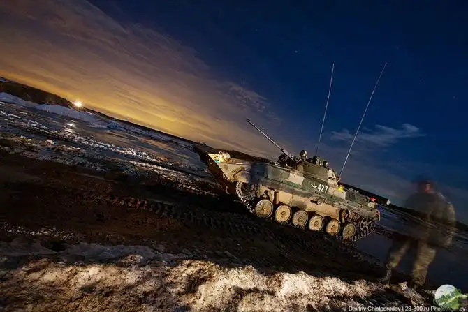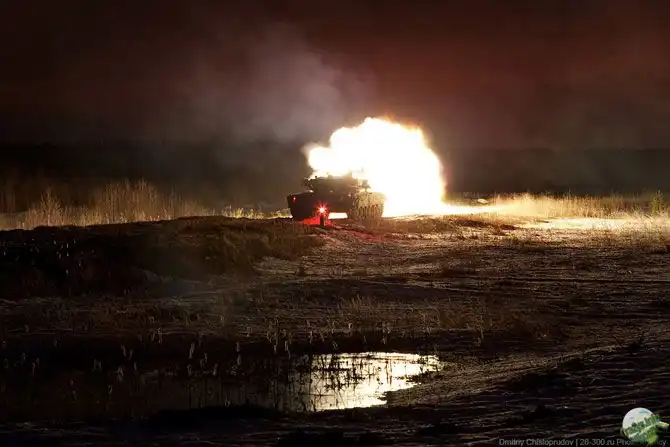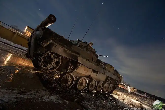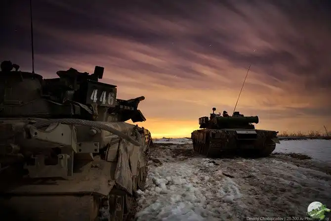 Фоторепортаж Дмитрия Чистопрудова с ночных танковых учений Кантемировской танковой дивизии под Наро-Фоминском.