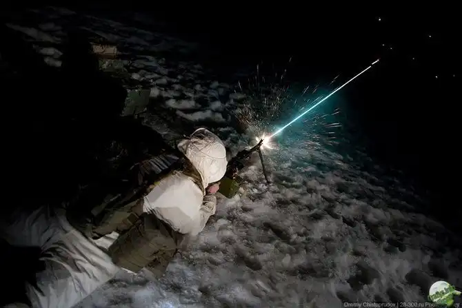 Огни в далеке — где-то там спрятались цели. Дистанция срельбы 1800 и 1200 метров.