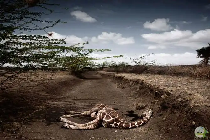Итальянский фотограф Стефано Де Луиджи выиграл престижный фотоконкурс «World Press Photo Contest 2010» благодаря этой фотографии погибшего из-за засухи жирафа.