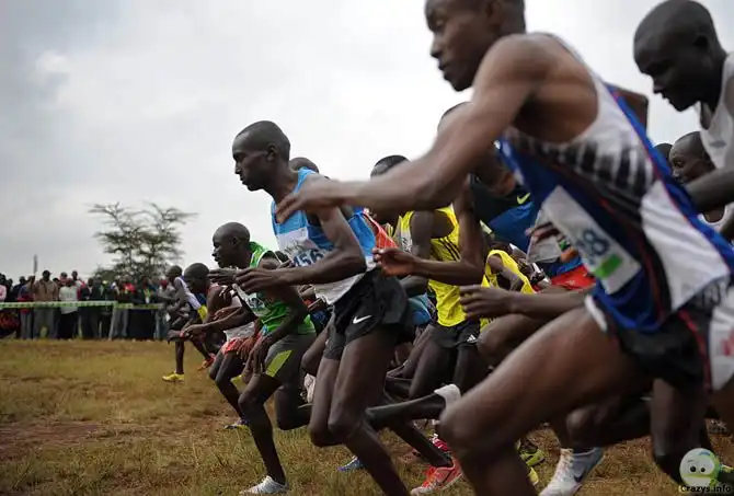Бегуны стартуют во время Кенийского забега по пересеченной местности на 12 км в Найроби.