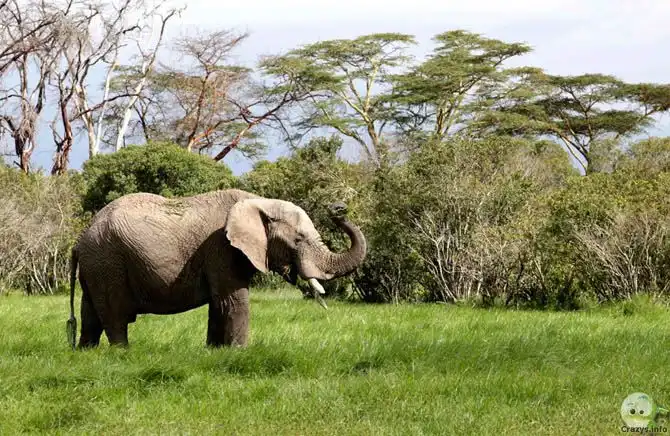 Слон пасется в заповеднике Ол Пейета, недалеко от города Нануки, в 350 км к северу от Найроби, у подножия горы Кения.