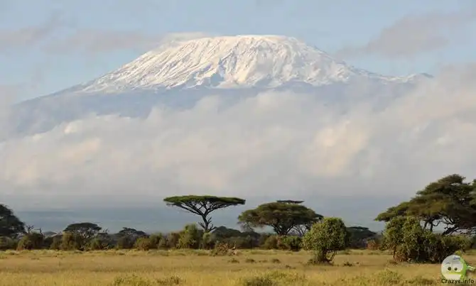 Свежевыпавший снег на горе Килиманджаро на рассвете. Снимок сделан из заповедника Амбусели.