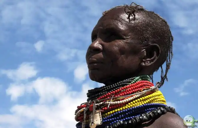 Женщина племени Туркана в деревне у лагеря для беженцев Какума на северо-западе Кении.