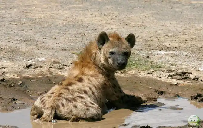 Гиена охлаждается в водах у берегов высохшего озера Накуру.