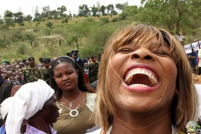 Теннисистка Серена Уильямс смеется во время своего визита в среднюю школу Серены Уильямс в Эмали. Уильямс прибыла в Кению в рамках своего благотворительного тура.