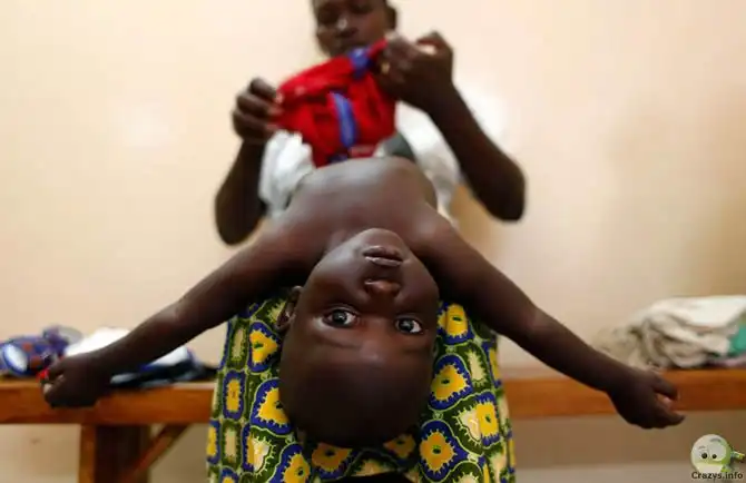 Мать одевает ребенка после осмотра врача на предмет получения новой прививки в исследовательском центре Уолтера Рида в Комбеве. В больнице опробовали новую вакцину, дав местному населению надежду, что наконец-то их дети не будут подвергаться смертельным заболеваниям, разносимым москитами.