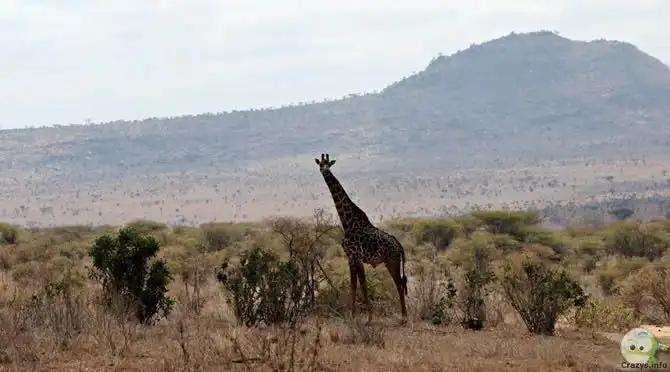 Жираф стоит на высушенной равнине национального парка Тсаво Уэст.