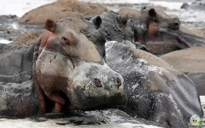 Гиппопотам охлаждается в луже грязи после засухи в национальном парке Тсаво Уэст. Скудные осадки во время нынешнего сезона дождей привели к сильной засухе, которая стала самой сильной в Кении с 1996 года.