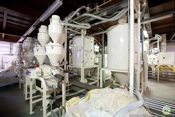 3. Вот здесь все все это дело смешивается, переплавляется и дальше по трубкам горячая пластмасса под давлением подается в цех для штамповки деталей телевизоров.