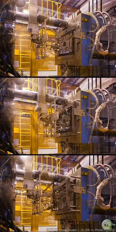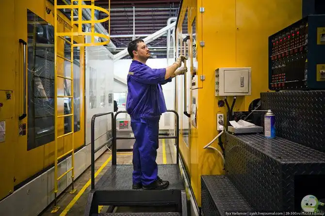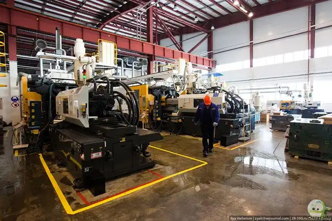 8. На производство одной детали уходит около 2-х минут, всего на заводе я насчитал 15 станков для литья деталей. Все они однотипны и работают со сменными пресс-формами.