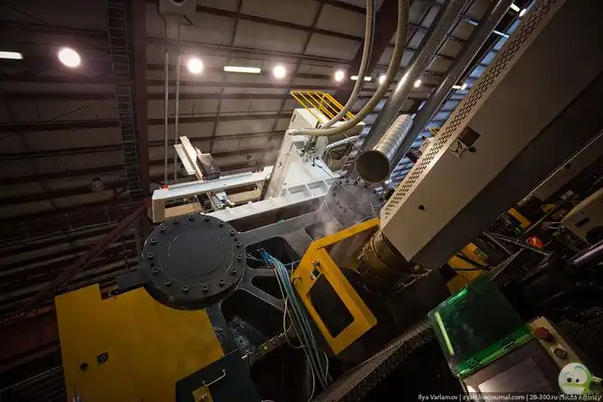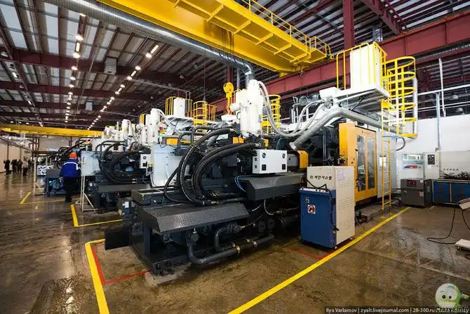 6. А вот станки в которые устанавливаются пресс-формы. Сюда под давлением поступает горячая пластмасса, под давлением ее закачивают в пресс-форму и получается деталь