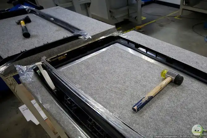 45. Сборка панелей производится вручную. Модели телевизоров часто обновляются, и автоматизировать весь процесс не выгодно.