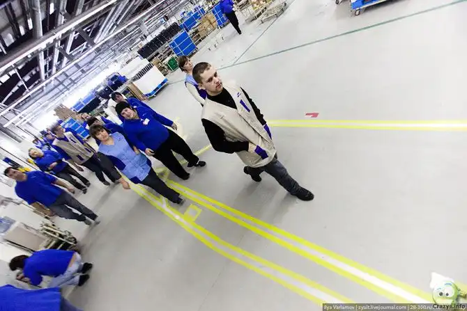 Как вы видите, все сделано для того, чтобы рабочие не скучали. Кстати, почти все работники завода молодые люди. Зарплата на конвейере 25 000, плюс соцпакет, перспективы карьерного роста.