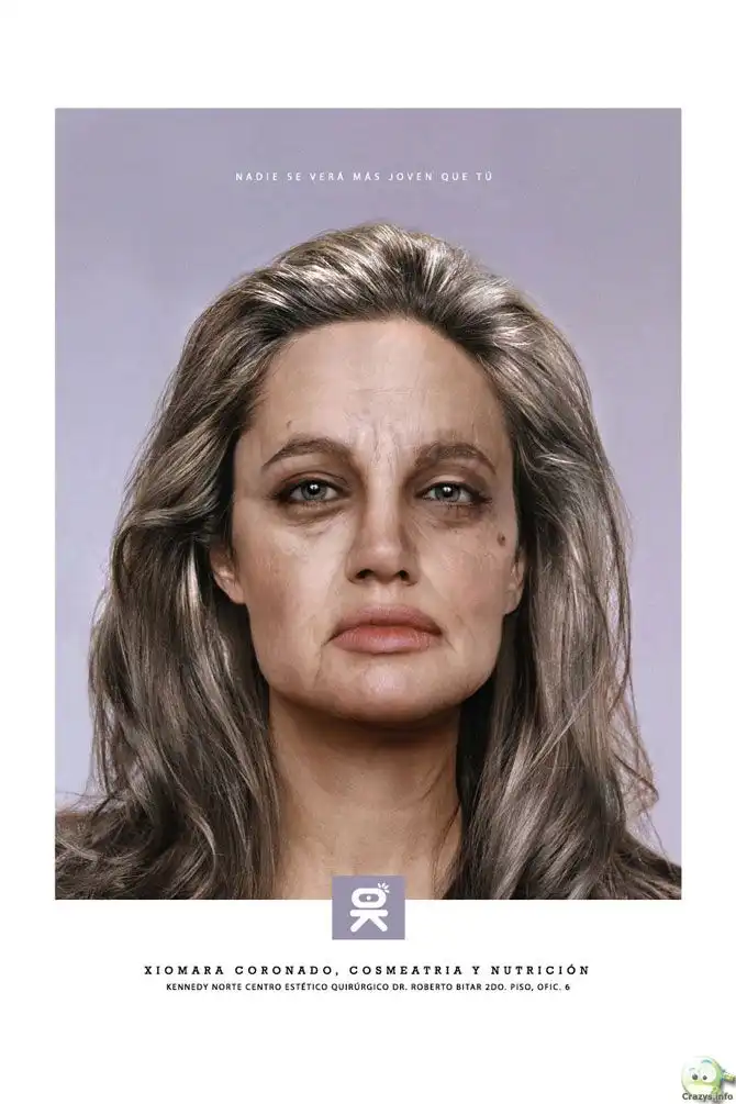 6. Южноамериканская клиника красоты Xiomara Coronado Beauty Center запустила рекламную кампанию с изображением состарившихся Анджелины Джоли, Пэри Хилтон и Шакиры, утверждая, что спустя годы они станут такими же морщинистыми, если не будут за собой ухаживать.
