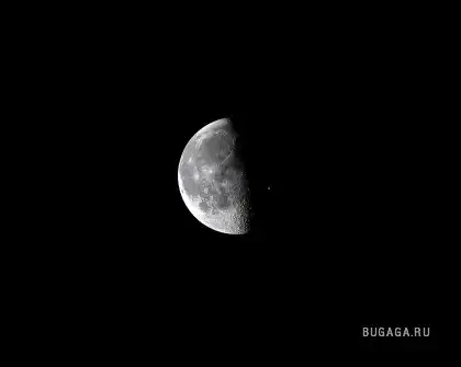 Международная космическая станция проплывает мимо Луны перед запуском космического шаттла «Discovery». (Fernando Echeverria/NASA via ZUMApress.com)