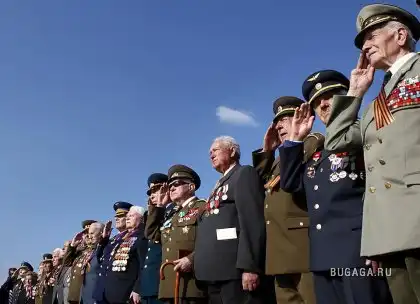 Ветераны Второй Мировой войны отдают честь жертвам войны на мемориальной службе в Братиславе. (Petr Josek/Reuters)