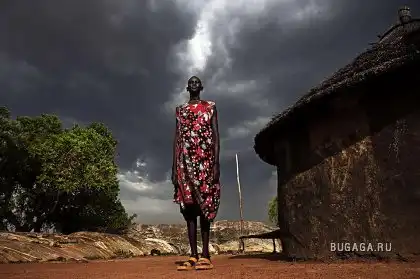 Представительница суданского племени динка стоит возле своей хижины перед надвигающейся грозой, среда. (Finbarr O’Reilly/Reuters)