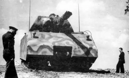 Единственный в мире вариант сверхтяжелого танка, воплощенный в металле. Разрабатывался фирмой "Порше", главный конструктор - профессор Фердинанд Порше. Существует две гипотезы назначения этого танка. По первой гипотезе - это танк прорыва сильноукрепленных оборонительных полос противника. По второй - подвижная огневая точка при охране и обороне командных пунктов Гитлера. Изготовлено два опытных образца в 1944 г.