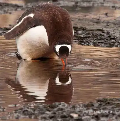 Пингвин генту по-видимому пронзен его собственным отражением в луже на Острове Gourdin в Антарктике. (EDWARD DIXON/BARCROFT MEDIA)