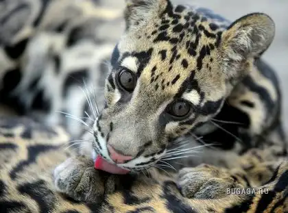 В зоопарке города Такома в США прибывший из Тайланда дымчатый леопард На Фун ухаживает за своей подругой Чай Ли. Парочке скоро предстоит показаться перед американской публикой. (AP)