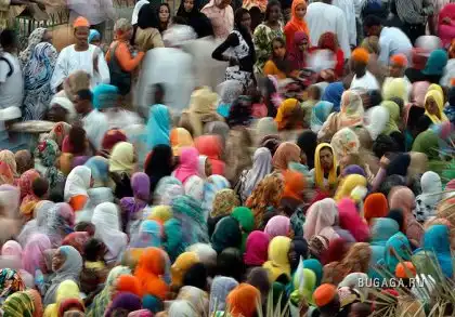 Суданские мусульманки собрались в мечети столицы Хартум по случаю празднования Мулид Аль-Бурани. (АР)