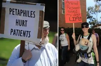 Ким Ландин (справа) и ее шпиц Дики, у которого был обнаружен синдром Кушинга, протестует против экспериментов над животными в Калифорнийском университете Лос-Анджелеса. (AFP/GETTY)