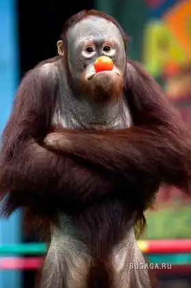Несчастный орангутан вынужден позировать фотографам в тематическом парке Бангкока, Таиланд. (BRONEK KAMINSKI / BARCROFT MEDIA)