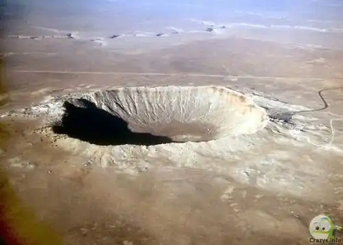 АРИЗОНСКИЙ КРАТЕР (Кратер Барринджера, Каньон дьявола) - один из крупнейших и лучше других сохранившийся метеоритный кратер, расположенный около каньона Дьябло на севере штата Аризона (США). Современные размеры кратера: диаметр - 1265 м, глубина - 175 м, возвышение вала - 40-48 м Предполагается, что кратер возник в результате падения на Землю около 27 тысяч лет назад двухмиллионнотонного никелевого метеорита размером 61--79 м. По всей видимости, именно тело метеорита было обнаружено в этом районе под землей с помощью бурильной установки, но попытки промышленной добычи никеля из-под земли провалились. Местонахождение кратера достаточно давно было известно местным индейцам, которые использовали для собственных целей металлические осколки метеорита. У местных племен возникло огромное количество легенд и преданий, связанных с этим священным местом. Ученым о существовании кратера стало известно лишь с 1891 года. Это не самый большой метеорит, упавший на Землю. В Антарктике на острове Уилкеса в 1962 году обнаружен метеоритный кратер диаметром 241 километр и глубиной 800 м. В Канаде на побережье Гудзонского залива есть кратер диаметром 443 км. С 1950-х годов и по настоящее время многочисленные туристы и местные жители сообщают о своих наблюдениях над Аризонским кратером: свечения воздуха и зависаний НЛО. По некоторым данным, в центре кратера иногда якобы наблюдаются гравимагнитные и хрональные аномалии. Кратер не раз использовался в качестве декораций для съемок фантастических фильмов о путешествиях землян на другие планеты, о прибытии огромных НЛО в "свою закрытую от чужих глаз тайную гавань".