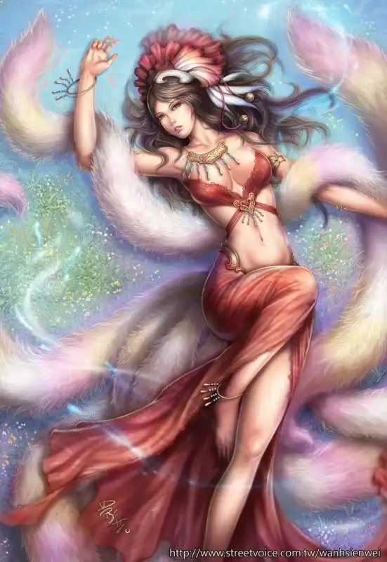 Когда кицунэ получают девять хвостов, их мех становится серебристым, белым, или золотым. Эти кюби но кицунэ («девятихвостые лисицы») получает силу бесконечной проницательности. Похожим образом в Корее говорится, что лиса, прожившая тысячу лет, превращается в кумихо (Kumiho) (дословно «девятихвостая лисица»), но корейская лиса всегда изображается злой, в отличие от японской лисы, которая может быть как благожелательной так и недоброжелательной. В китайском фольклоре также есть «лисьи ду́хи» (Huli jing) во многом схожие с кицунэ, включая возможность девяти хвостов.