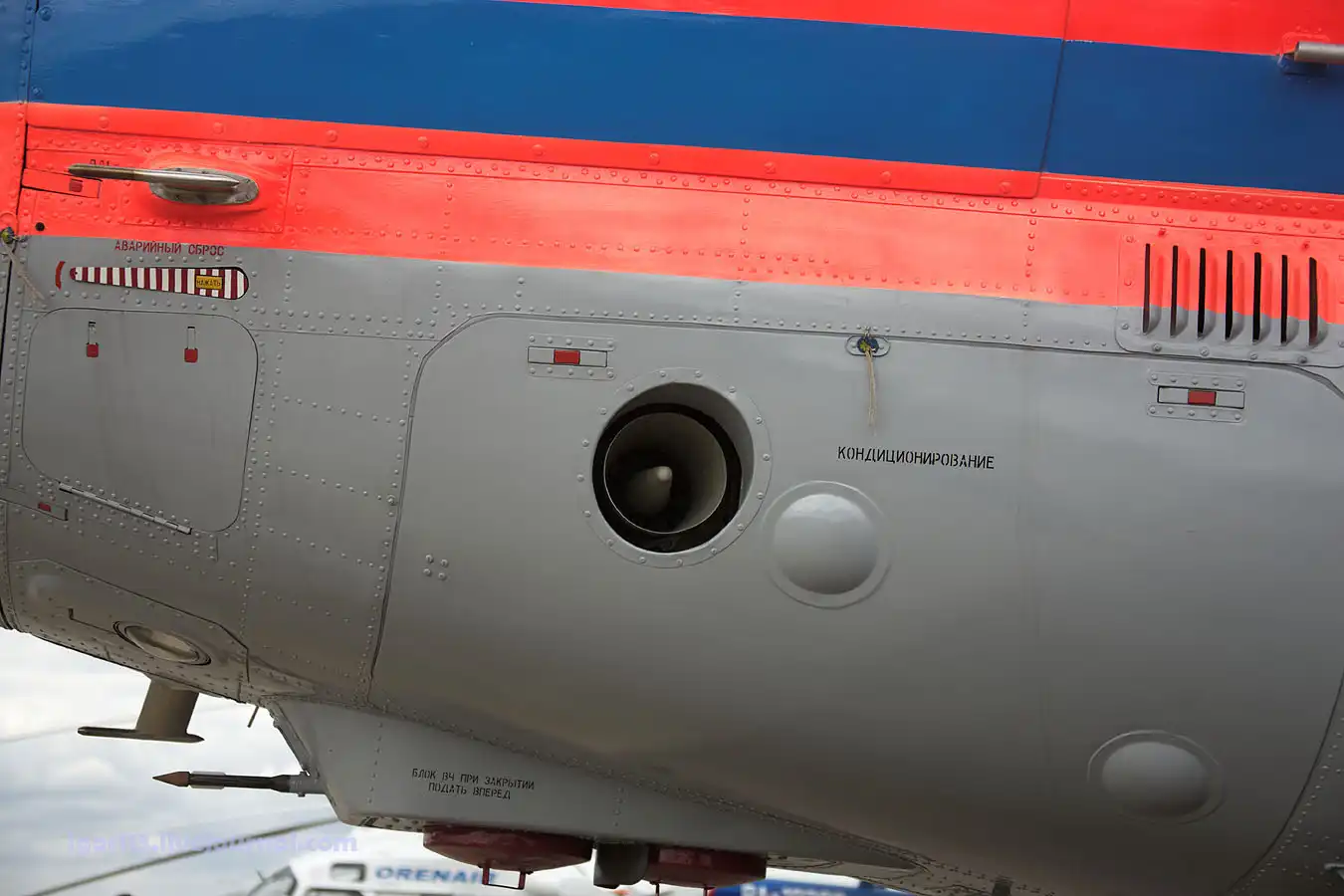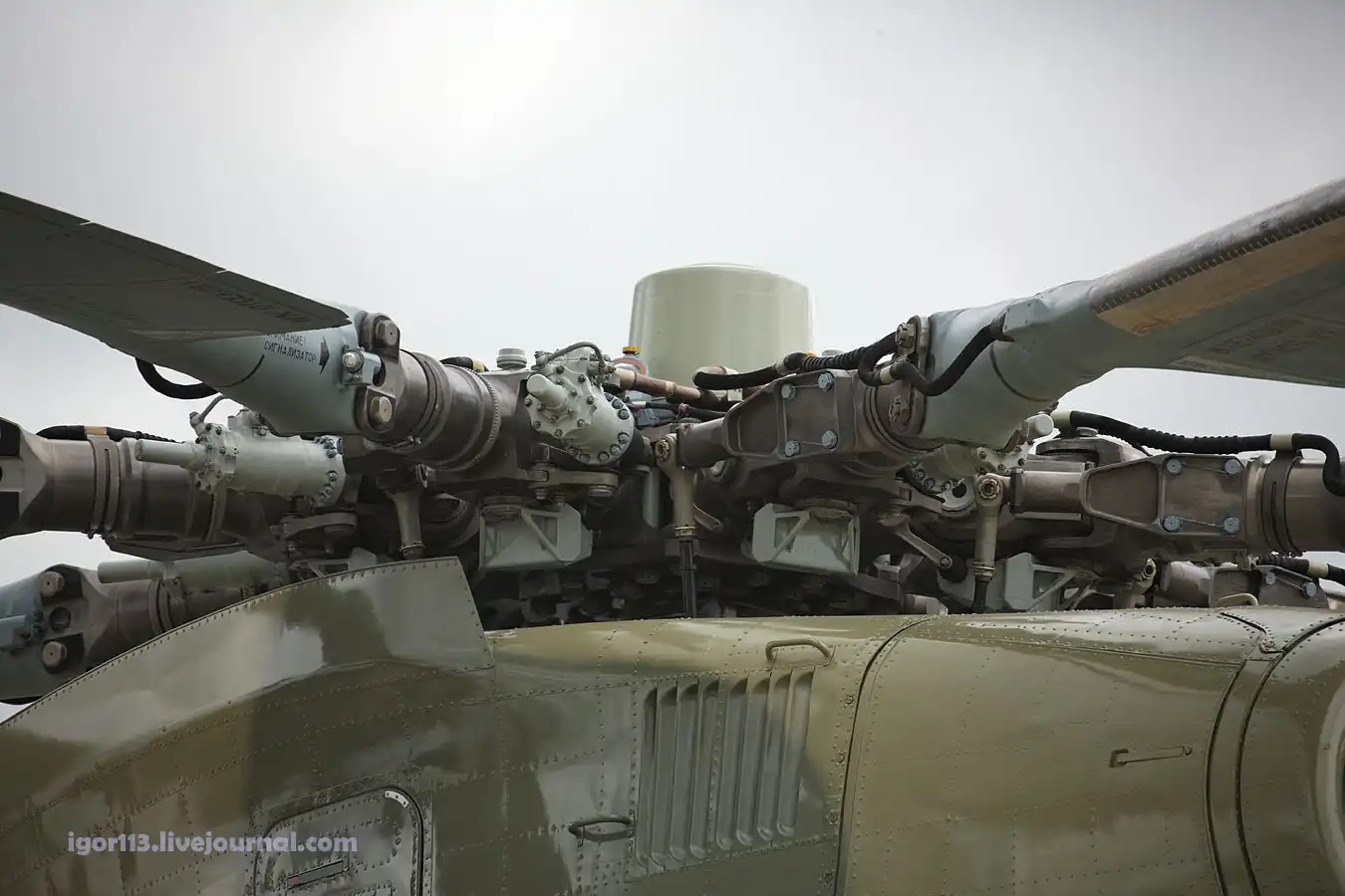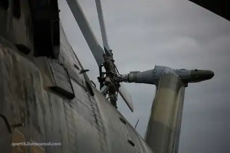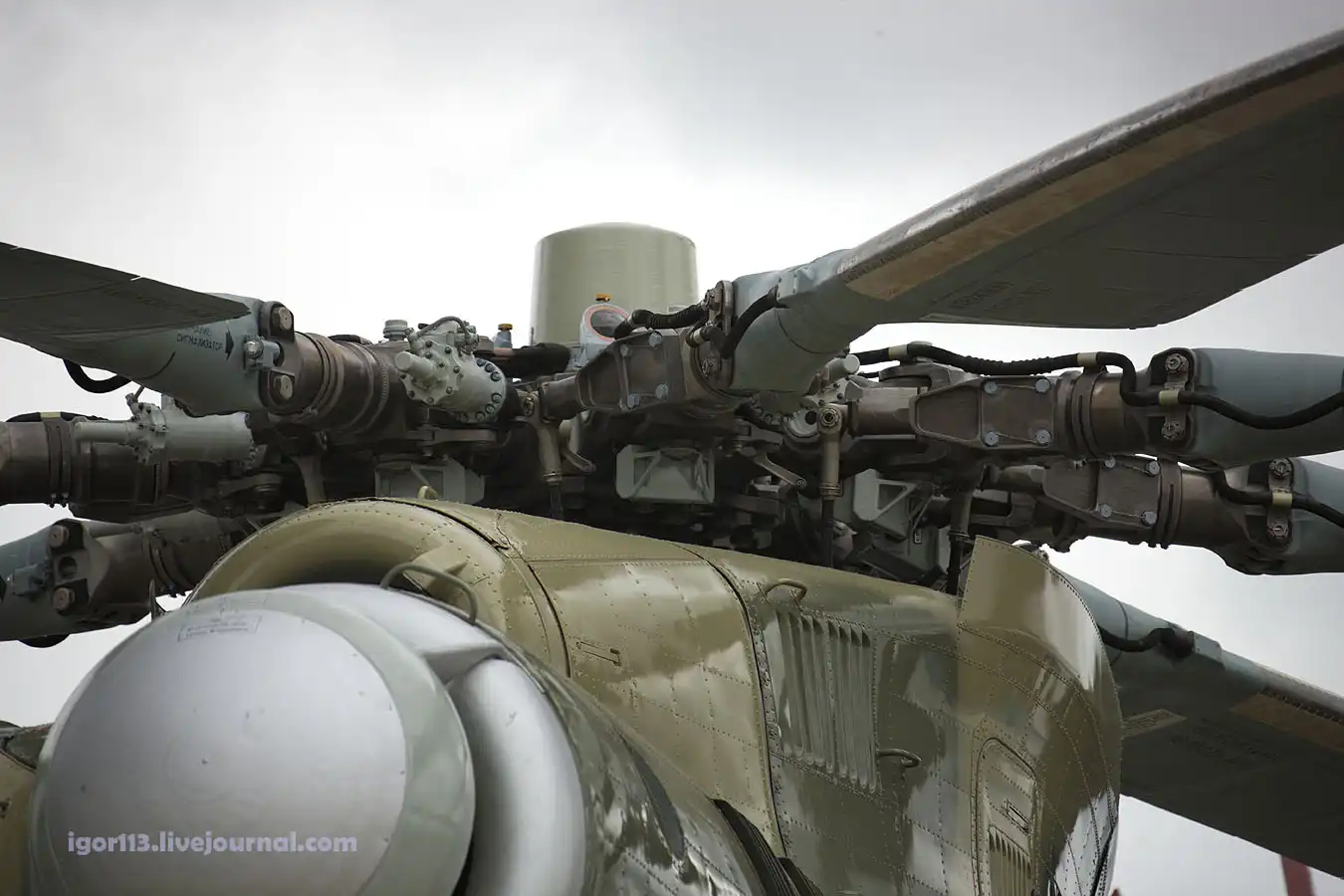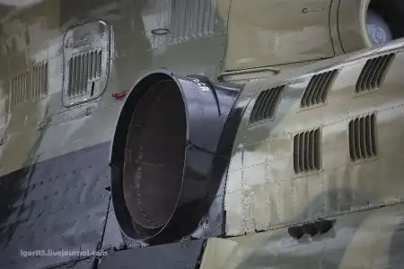 двигателей пылезащитные устройства (ПЗУ) грибкового типа со степенью очистки 65-70%, использующие центробежный эффект для улавливания посторонних частиц. Это позволило в дальнейшем вертолету работать с пыльных площадок практически без уменьшения ресурса двигателей при минимальном снижении их мощности. Чтобы обходиться без аэродромных источников электропитания и сжатого воздуха, вертолет оснастили ВСУ. А чтобы не прибегать при