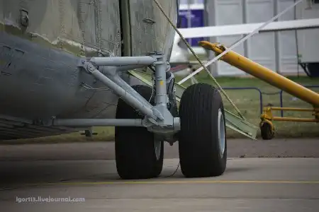 Шасси неубирающееся, трехопорное, со сдвоенными колесами и убирающейся хвостовой опорой. Передняя опора самоориентирующаяся, главные опоры со сдвоенными колесами размерами 1120 х