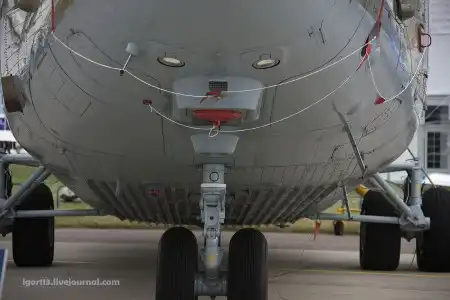 Конструкция основных опор шасси позволяет менять на стоянке клиренс, приподнимая заднюю часть фюзеляжа, что дает возможность максимально приблизить груз к трапу. Чтобы не мешать подходу
