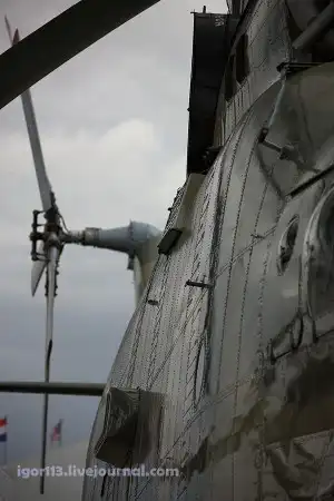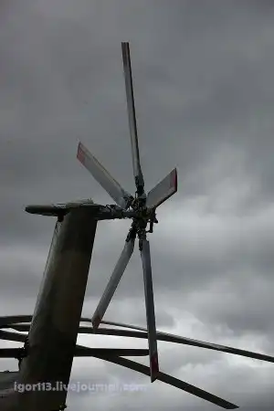 присоединяются 26 секций с нервюрами, обшивкой из стеклопластика и сотовым заполнителем. Носок лопасти защищен противокоррозионной накладкой из титанового сплава. Хорда лопасти 0.835м,