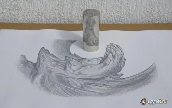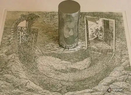 Но если вы поставите в нужном месте на картине цилиндрическое зеркало, то все меняется.