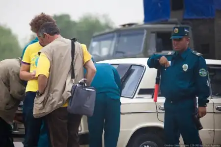 23. Взятка за превышение скорости в 426 рублей. Илья пересчитывает деньги — человек с радаром терпеливо ждет. Это мы проходим разминку перед Казахскими гаишниками. От том, как мы пересекли границу с Казахстаном и многом другом — в следующих путевых заметках.