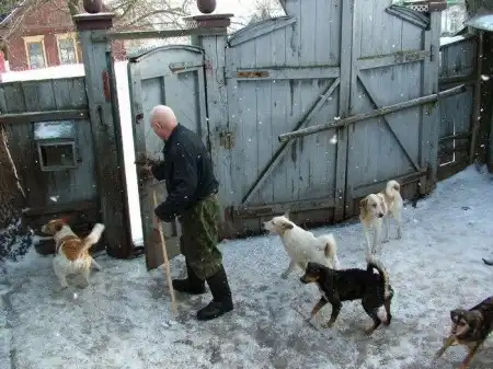 Животных у Владимира Филипповича тринадцать голов. Одиннадцать собак и две кошки. Подданные, мягко говоря, служат своем Царю истово. Только подойди к этому прекрасному, но такому непонятному дому... такой гвалт раздается, целый собачий хор! Хотя в сущности все собачки - мелочевка, жалкие шавки, подобранные Акуловым на помойках. Они преданно глядят своими бесконечно благодарными пуговками в глаза хозяина и кажется готовы на все ради него. Только не на предательство...