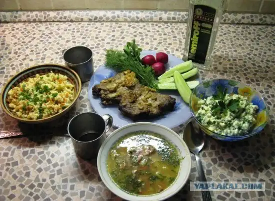 Праздник – есть праздник, не будь ЯПозитивным Самоварщиком. Дабы не тянуть с интригой, по поводу праздничного стола, отдельно висело и это объявление. Жаль, фотографии качеством получше не осталось, потому перечислю список под "Продовольственным пайком":