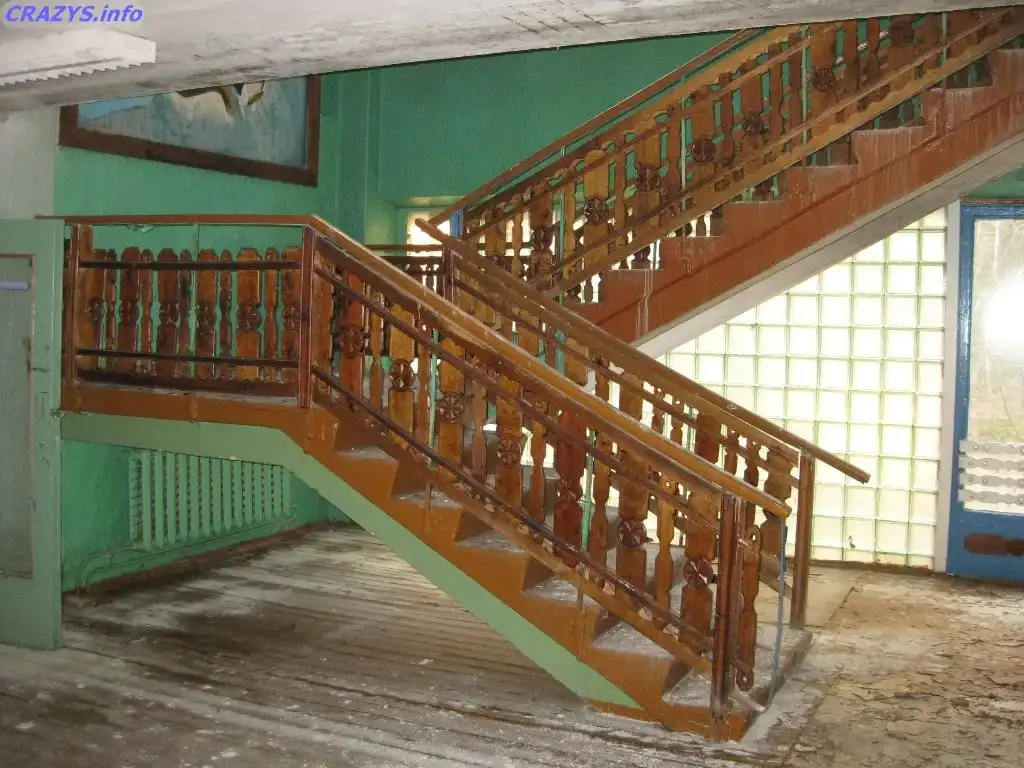 Красивая лестница в одном из корпусов хорошо сохранилась