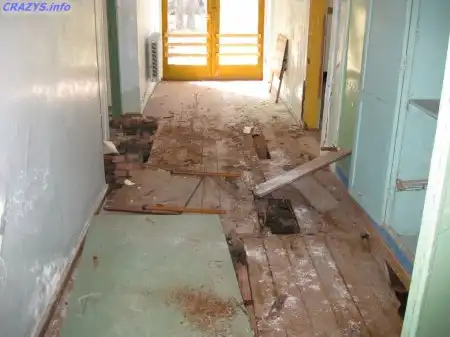 Пол в некоторых корпусах прогнил так,что нам приходилось проявлять повышенную осторожность