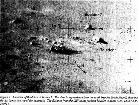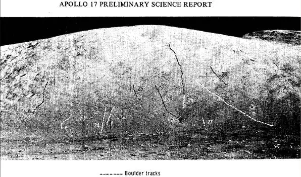 Странные объекты привлекли всеобщее внимание и когда астронавты Аполлон-17, увидели следы воочию, у них на руках уже была фотография района, с этими самыми следами.